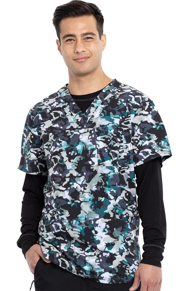 Chill out in the fashion-forward, Infinity by Cherokee Men’s Cool Down Camo Print Scrub Top. This fresh, inspired print scrub top is sure to spark joy.
