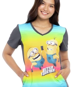 Bring the energy on your next shift with the Tooniforms by Cherokee Women’s Friends Together Print Scrub Top. The ombre backdrop and lovable minion characters add energy to your day.