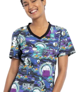 Bring your favorite characters (back) to life with the Tooniforms by Cherokee Women’s Midnight Pumpkin Print Scrub Top. This fun, spooky Halloween print is sure to start the party.
