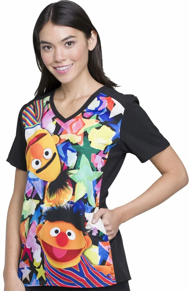 Two of your favorite pals make this Tooniforms by Cherokee Women’s V-Neck Contrast Back Sesame Street Print Scrub Top ideal for pediatric environments. In addition to the print, this scrub top offers comfy fabric and bold colors, which makes this scrub style fun to wear anytime.