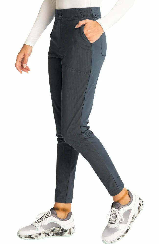 With a woven front and a knit back, the STATEMENT by Cherokee Women’s Zip Fly Tapered Leg Scrub Pant is the ultimate in stylish comfort. Five pockets give you plenty of utility, while the 4-way stretch fabric lets you move freely.