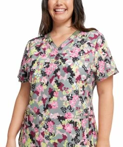 Add trendsetting style to your uniform with the Infinity by Cherokee Women’s Floral Camotion Print Scrub Top. The edgy print and figure-flattering seamed details make this top a favorite.