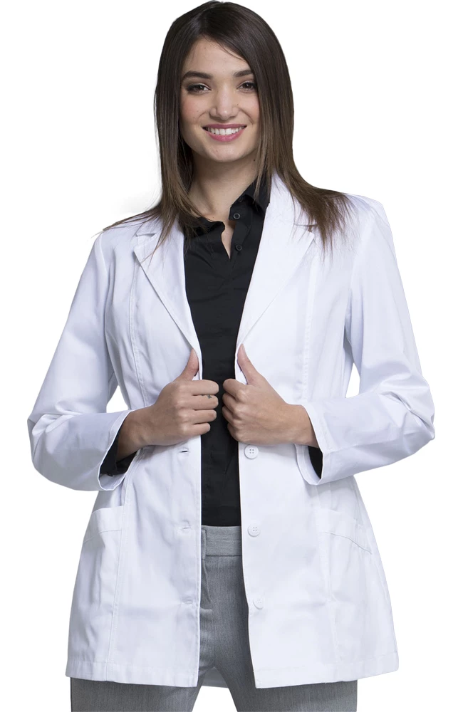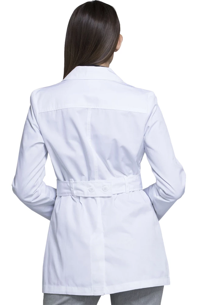 Fashion and function at their purest. Twill lab coat features a five-button front, front princess seams for a flattering fit, front angled-pockets, a stylish back belt with button detail, back yoke and center back vent.