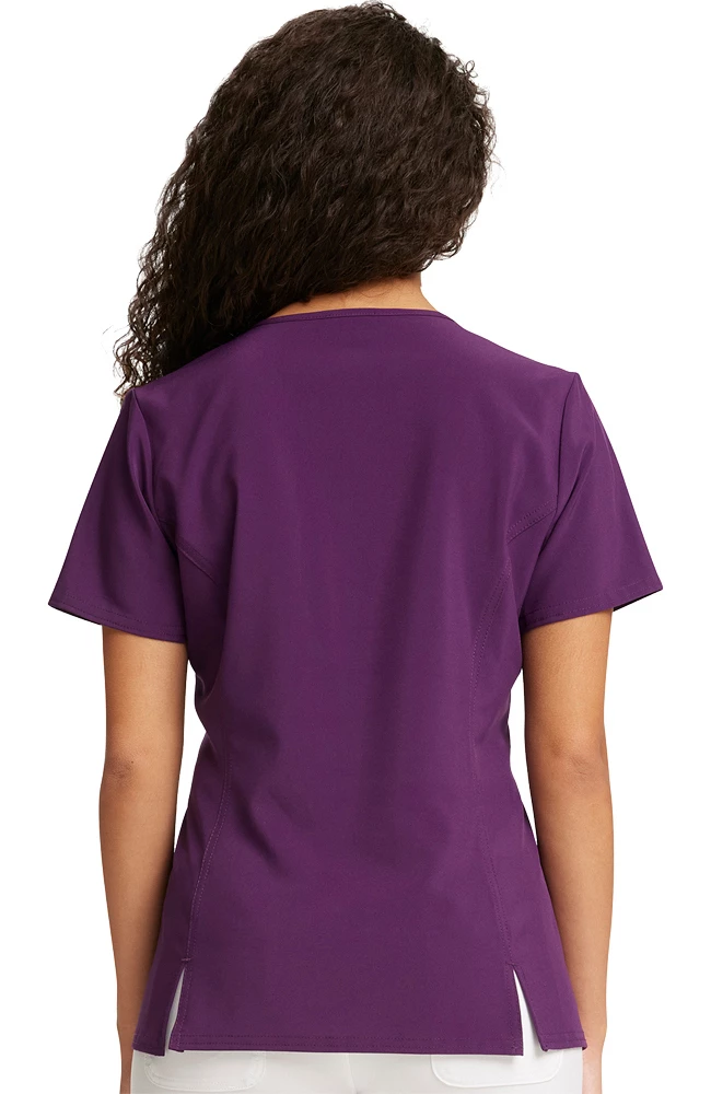 Spread warmth (and maybe a little magic) when you wear the Tooniforms by Cherokee Women’s Sisters Print Scrub Top. The dazzling Anna and Elsa print is balanced by the flattering contrast side panels and sleeves.