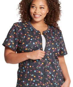 The Dynamix by Dickies Women’s Dots So Bright Print Scrub Top allows for both stye and comfort. The colorful geometric print and adjustable front zipper closure give you the best of both worlds.