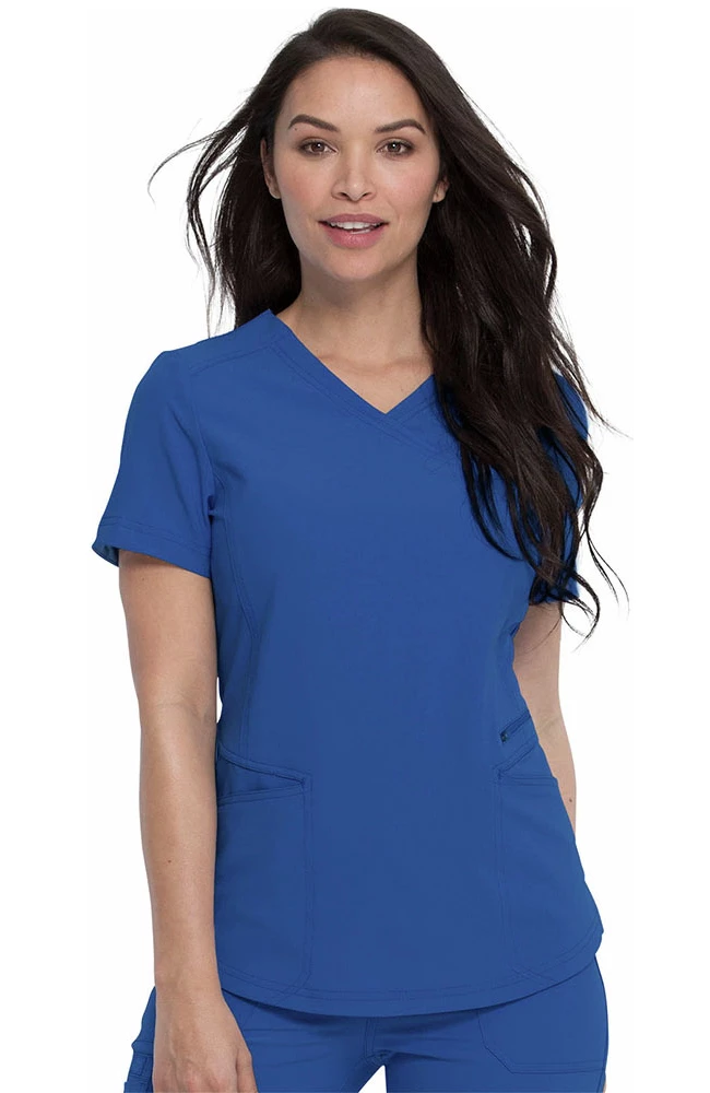 The comfortable, Retro by Dickies Women’s Mock Wrap Solid Scrub Top creates interest through angled and contoured seaming. Practical and completely flattering, this retro-inspired scrub top is sure to be your new favorite look.