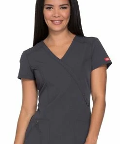 Find the best of comfort and style in the Xtreme Stretch by Dickies Women’s Mock Wrap Solid Scrub Top. Stylized seaming and utility details keep you organized and fashionable.