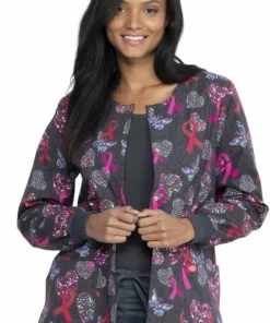 Dickies Clearance Women’s Snap Front Speck-Tacular Love Print Scrub Jacket