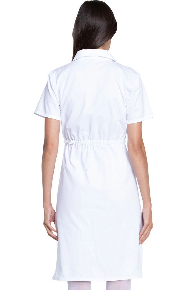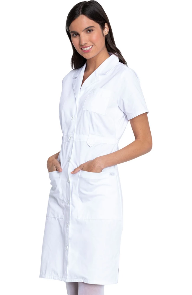 From EDS Signature by Dickies, the company known for quality and toughness, this classic missy-fit dress has a notched collar, an eight-button closure, 1 chest pocket, 2 patch pockets, and side vents. Features a front waistband with button tabs, bust darts, and back elastic for shaping. Brushed 60% Cotton/40% Polyester Twill.