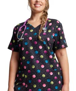 Add a playful pop to your uniform with the Dynamix by Dickies Women’s V-Neck Dot’s Poppin’ Print Scrub Top. It features clever utility details, plus 4-way stretch to keep you comfortable on the longest shifts.