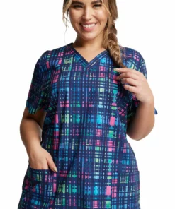 Add festive vibes to your uniform with the EDS Signature by Dickies Women’s V-Neck Glowing Plaid Print Scrub Top. This holiday-inspired top is finished with two spacious front pockets for your essentials.