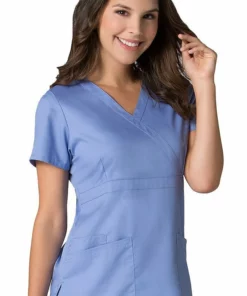 The EON Women’s COOLMAX® Mock Wrap Mesh Panel Solid Scrub Top blends a feminine y-neckline with sporty styling for a fashionable look that performs. Two patch pockets, a cell phone compartment, and a utility loop deliver the storage options that you need for a busy work day.