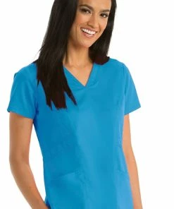 An embellished neckline, strapping details, and princess seaming add stylish value to this Grey’s Anatomy Classic Women’s V-Neck Solid Scrub Top. Store your cellular device without sacrificing space for your other tools with a convenient PDA pocket.