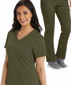 Get a sleek, streamlined look when you wear the Spandex Stretch by Grey’s Anatomy Women’s Solid Scrub Top & Kim Colorblock Scrub Pant. Contrast details add extra style to this comfortable and convenient scrub set.