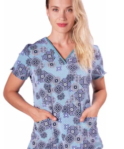 The Premiere by Healing Hands Women’s Amanda Graphic Scenery Print Scrub Top features medallions and geos galore. These intricate designs add an element of sophistication to your look.