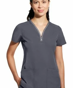 An edgy neckline adds fashion-forward appeal to the 360 by Healing Hands Women’s Sonia Zip Y-Neck Scrub Top. Made with sustainability in mind, it features reflective details and three convenient pockets.