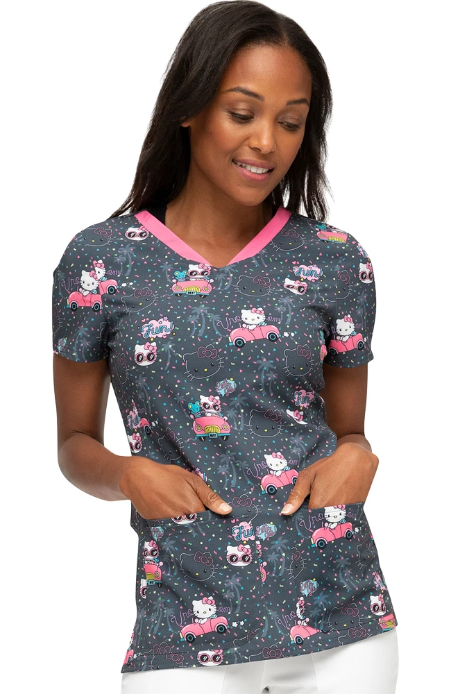 Get ready for compliments when you sport the Break On Through by heartsoul Women’s Kawaii Vacation Print Scrub Top. This ultra sweet scrub top is perfect for pediatric settings.