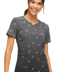 A fashion-forward print makes the Break On Through by heartsoul Women’s Pineapple Pop Print Scrub Top an easy favorite. The unique neckline and ombre background bring a bit of edge to this playful scrub top.