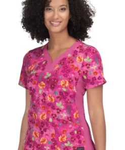 Vibrant florals and a heart-shaped neckline add delightful style to the sustainable Planet koi Women’s Aurora Pressed Flower Print Scrub Top. For every planet koi garment sold, one tree will be planted.