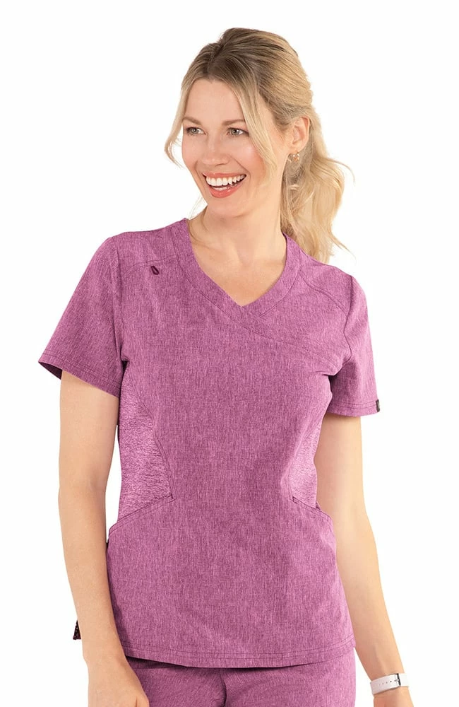 The koi Basics Women’s Charlotte Solid Scrub Top is your essential athleisure piece. Available in heathered colorways, this top uses stretch paneling details to improve your reach.