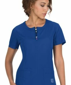 A zippered neckline gives the koi Lite Women’s Serenity Zipper Neck Solid Scrub Top an athletic feel. Layered pockets increase convenience without giving you a bulky look.