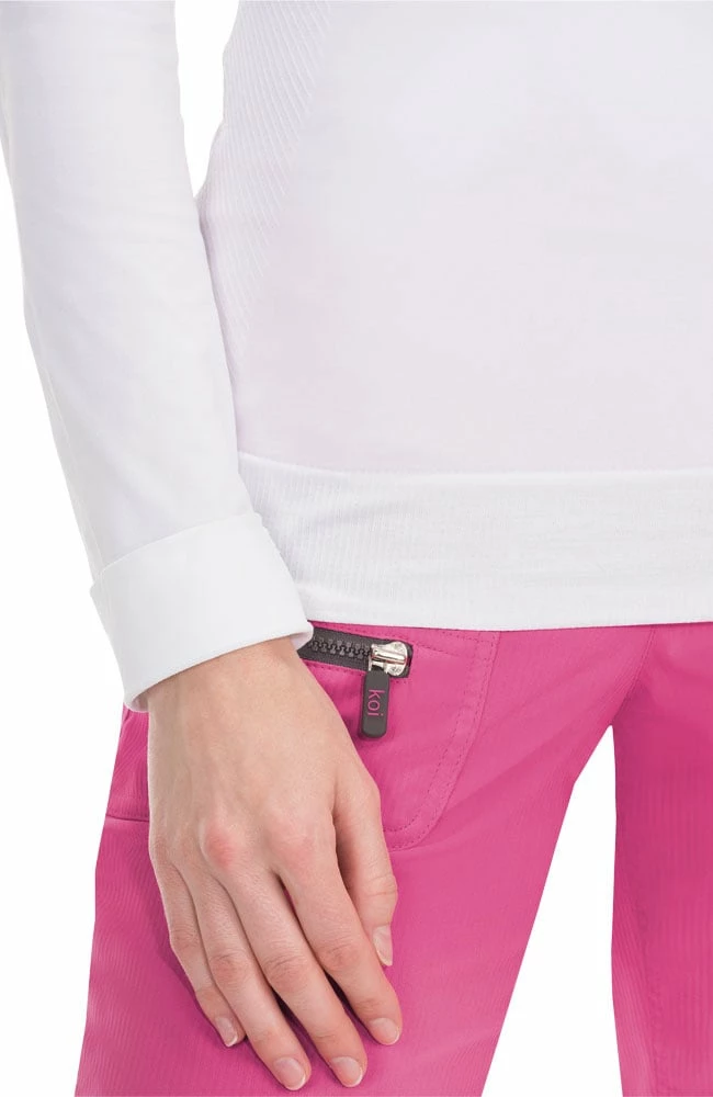 A seamless silhouette makes the koi Lite Women’s Divine Seamless Solid Long Sleeve T-Shirt perfect for layering. Ribbed side panels are specially engineered to hug your curves for an always-flattering fit.