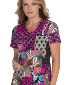 The koi Next Gen Women’s Early Energy V-Neck Tropical Patch Print Scrub Top is designed in an ultra flattering fit with side slits and a slightly curved hem. This standout scrub top is also moisture-wicking and breathable, so you stay cool and dry in any environment.