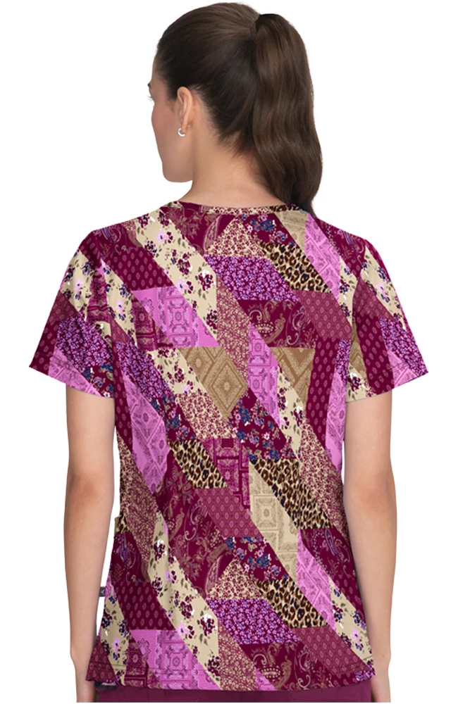 The koi Stretch Women’s Leia Patched with Love Scrub Top is unbelievably comfortable, elegant, and stylish all at once. Designed with a patchwork print, this V-neck scrub top is made from soft cotton blend with stretch that keeps its shape.