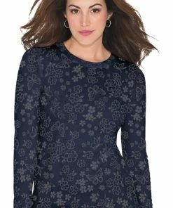 Layered under your scrubs or worn solo, the koi Stretch Women’s Presley Flower Shower Navy Burnout Print Underscrub T-Shirt is a fun twist on an essential. The stretch jersey fabric is so comfortable to wear.