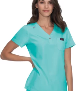 You’ll love the sweetness and simplicity of the Women’s Rosemary Solid Scrub Top from Betsey Johnson by koi, with its heart-shaped snap adorning the neckline.