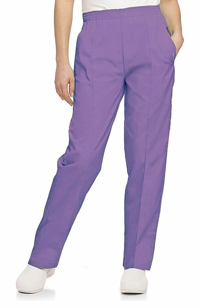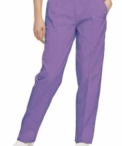 This popular scrub pant from Landau flatters every shape and size and features a stitched crease leg for a polished look in addition to reinforced pockets. The covered elastic waistband won’t itch, bind, or roll. Made of polyester/cotton fabric.