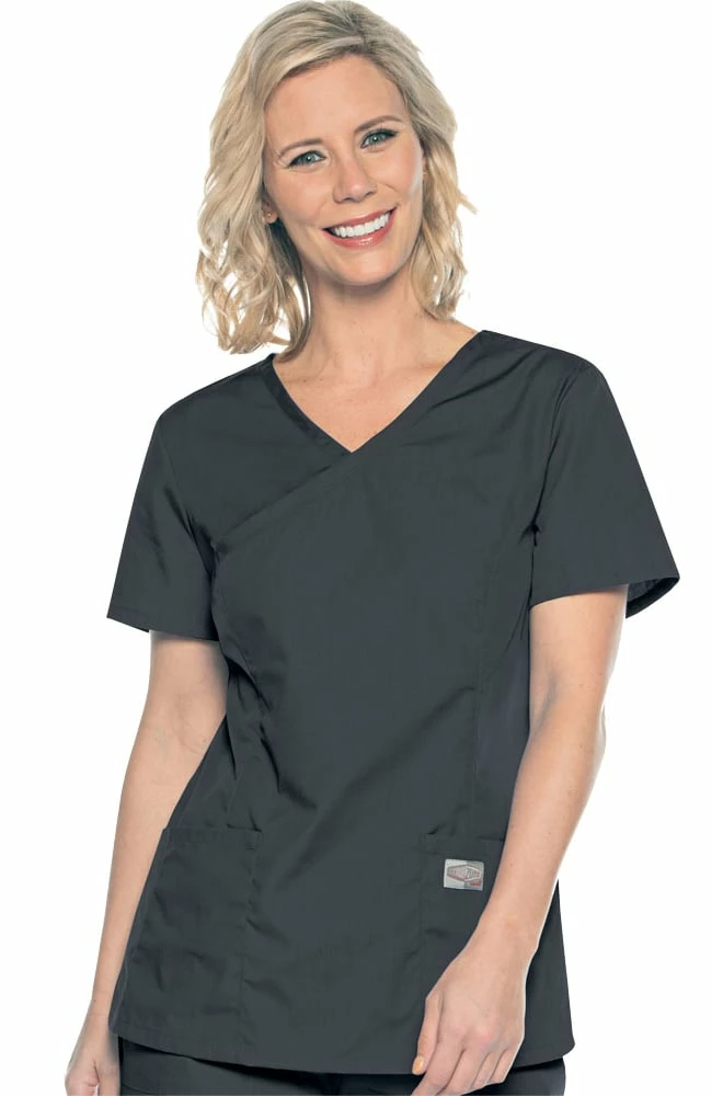 Find your perfect fit in the ScrubZone by Landau Women’s Surplice Solid Scrub Top. The mock-wrap neckline and patch pockets add elegant simplicity to your look.