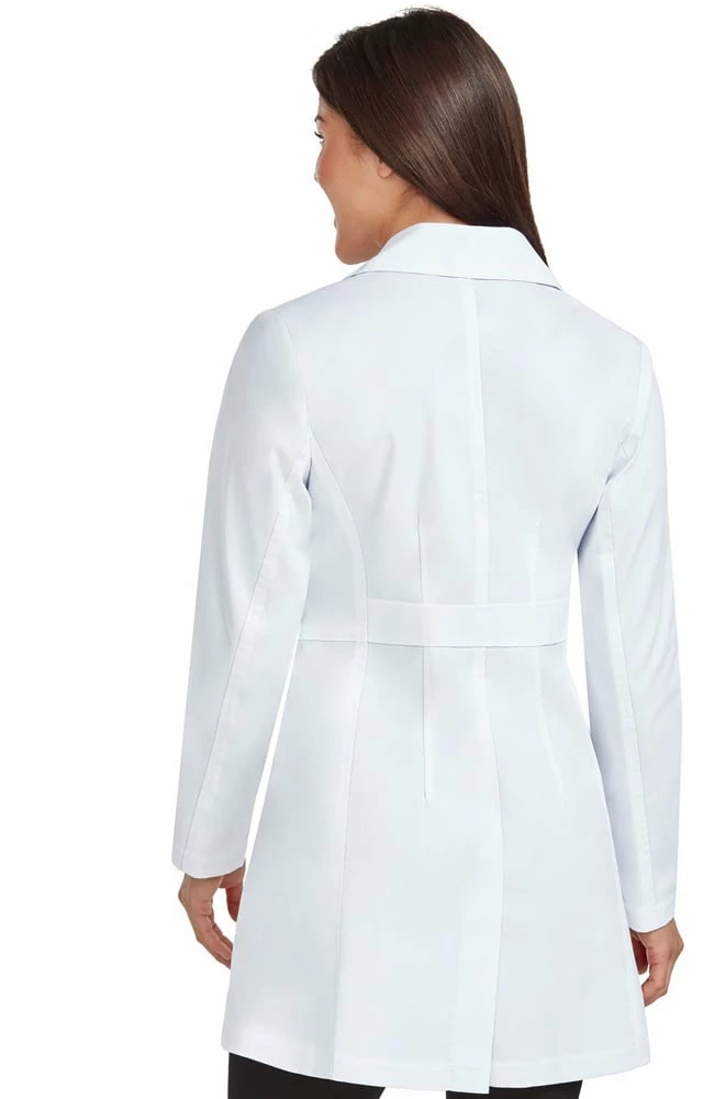 For an exceptionally flattering silhouette, try the Med Couture Boutique Women’s Vivien 33″ Lab Coat. This mid-length style looks great buttoned-up or left open.