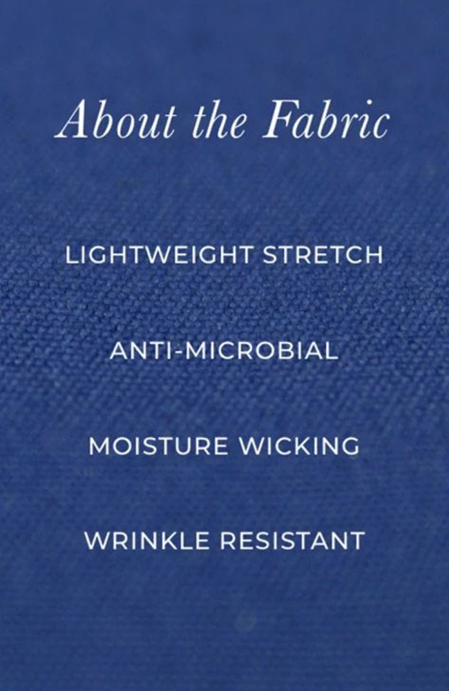 - Lightweight, antimicrobial stretch fabric