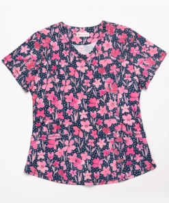 White Cross Women’s Round V-Neck Spring In My Step Print Scrub Top