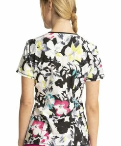 Cherokee Clearance Women’s Knit Panel Breezy Buds Print Scrub Top