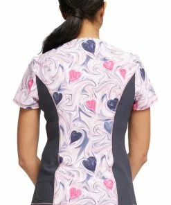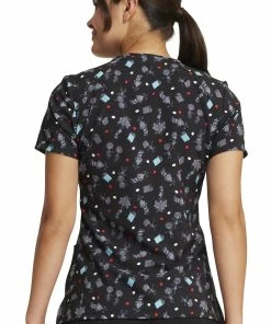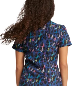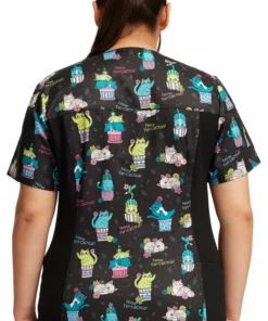 Cherokee Women’s Knit Panel Feline Fan-cactus Print Scrub Top